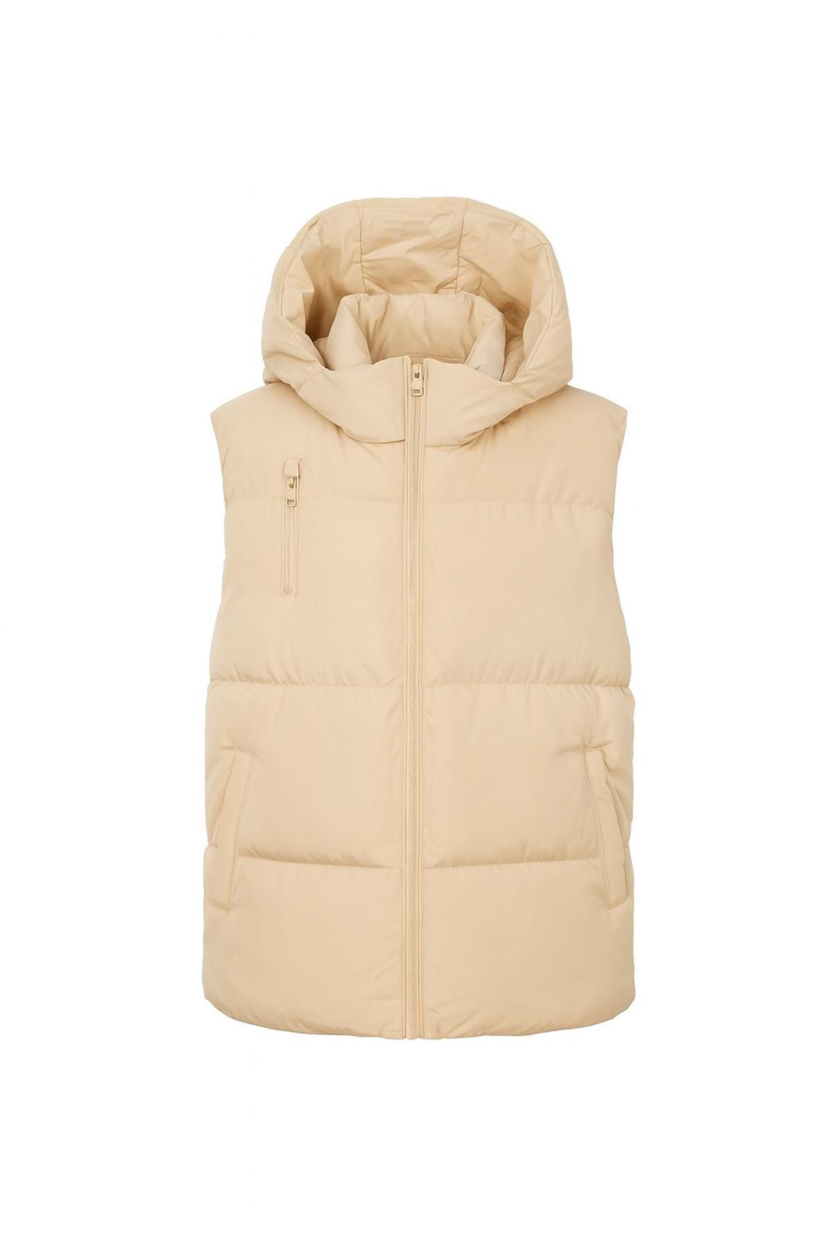 3 Cepli Kapüşonlu Kısa Dolum Yelek - Bej