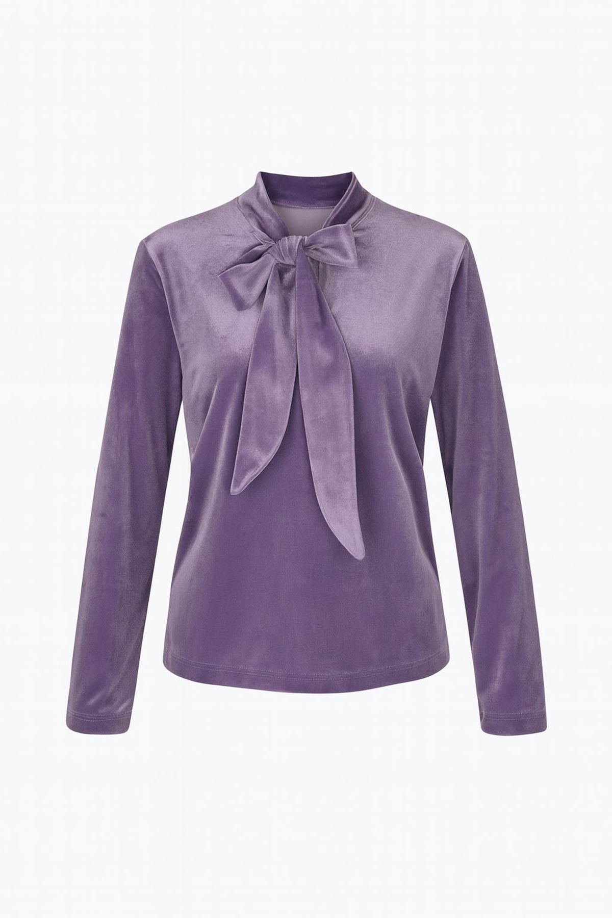Kadife Fiyonklu Bluz -Mor