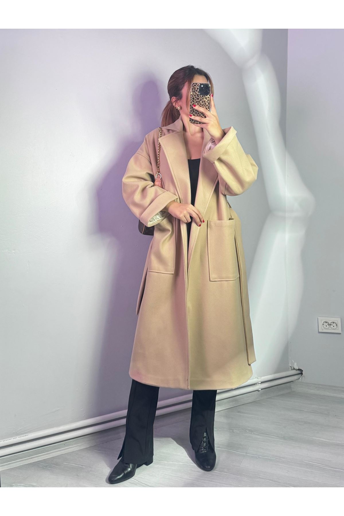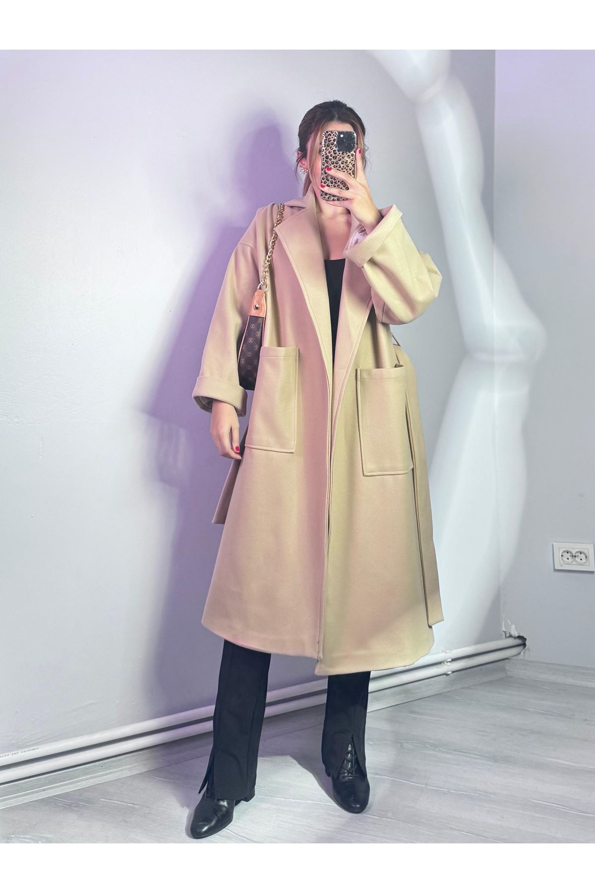 Manken Bilgileri: 167cm 63kg Giydiği Beden: 1(S/M)Yeni Sezon Kaşe Kumaş QENZ Trençkot modelidir.