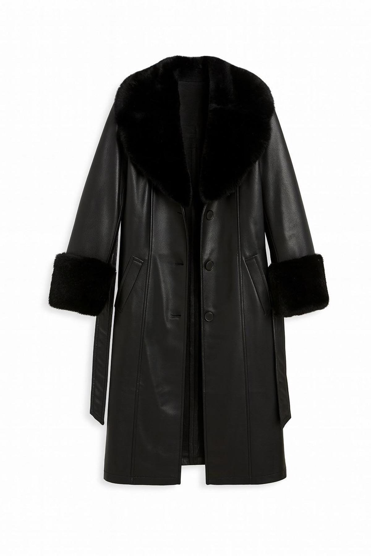 Kol Ucu ve Yakası Kürklü Kaban - hardal