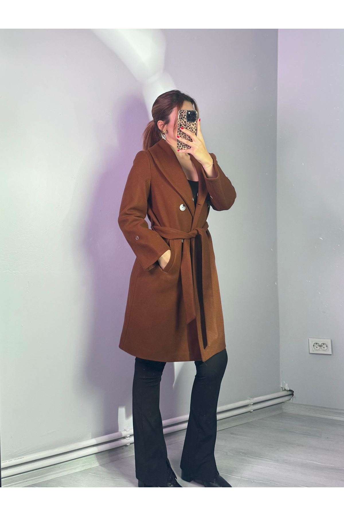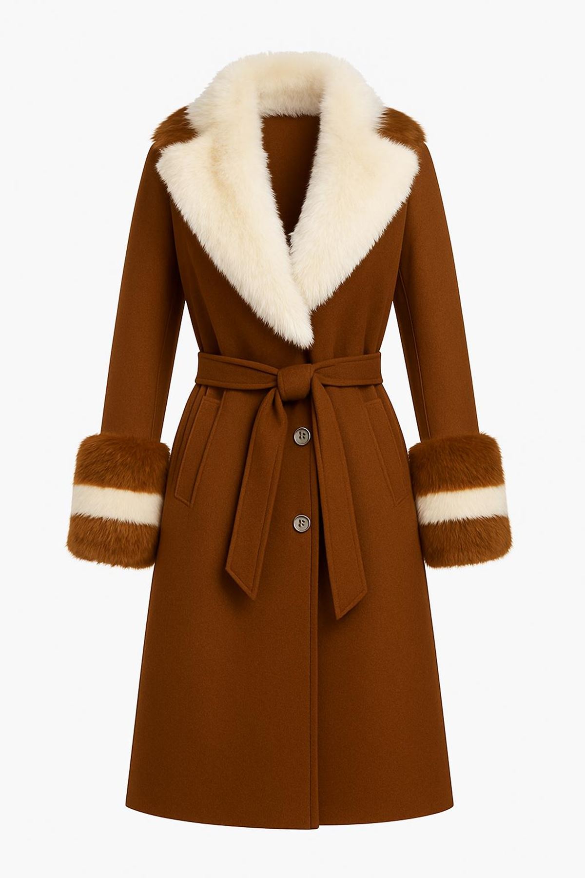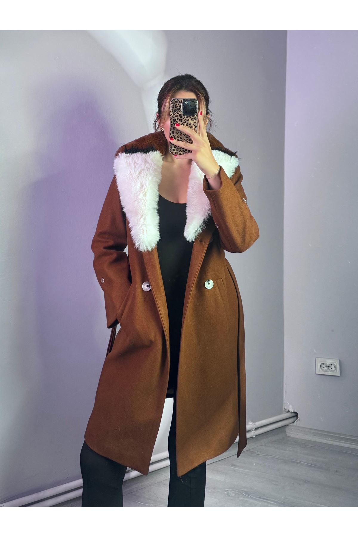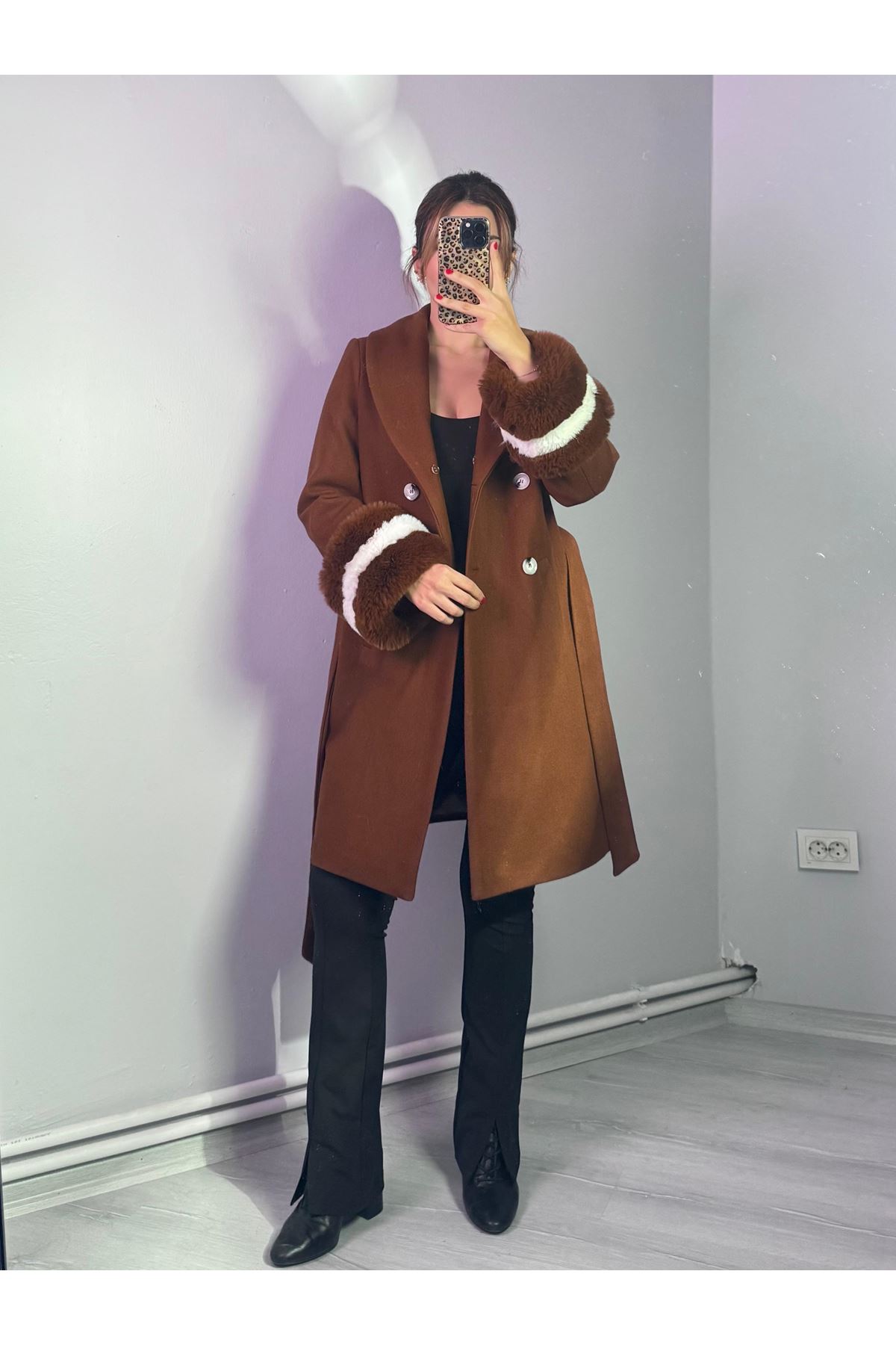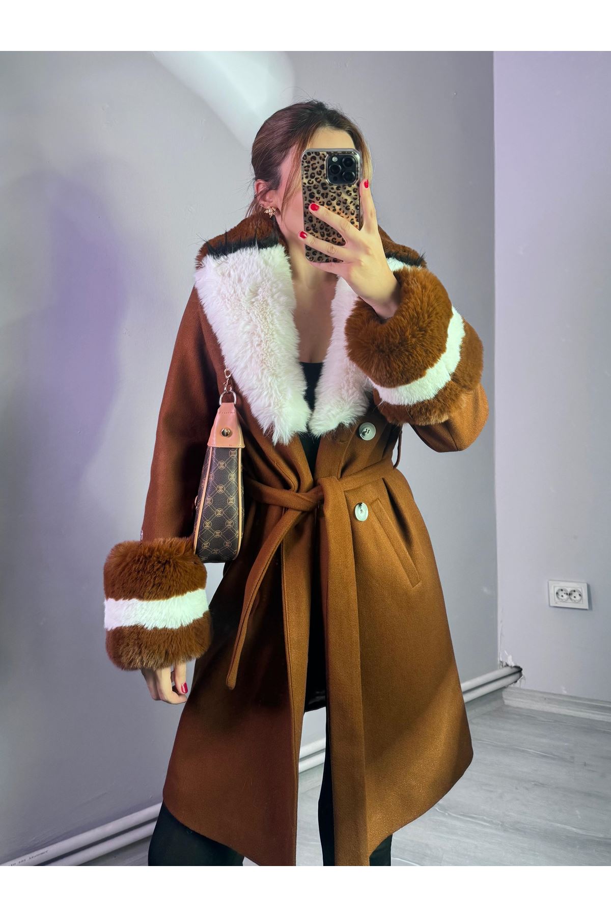 Yakası Ve Kolu Çift Renkli Kürklü Kaban