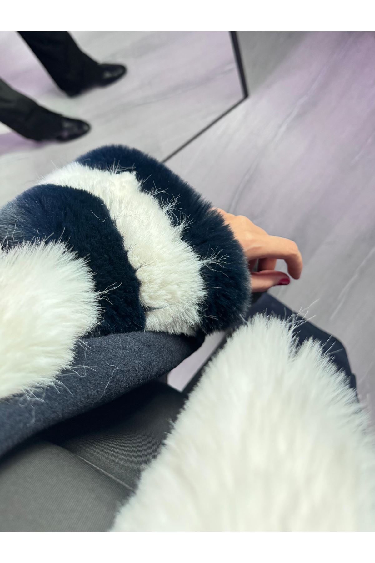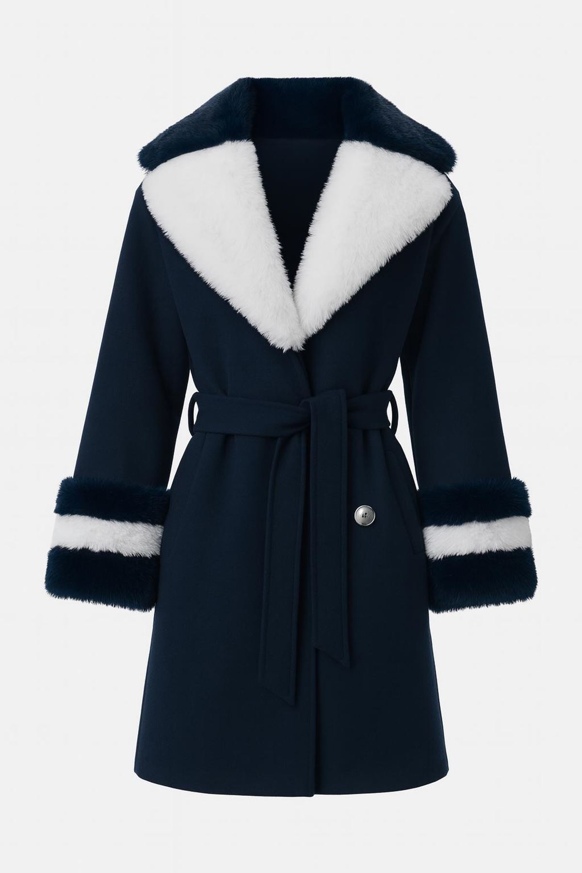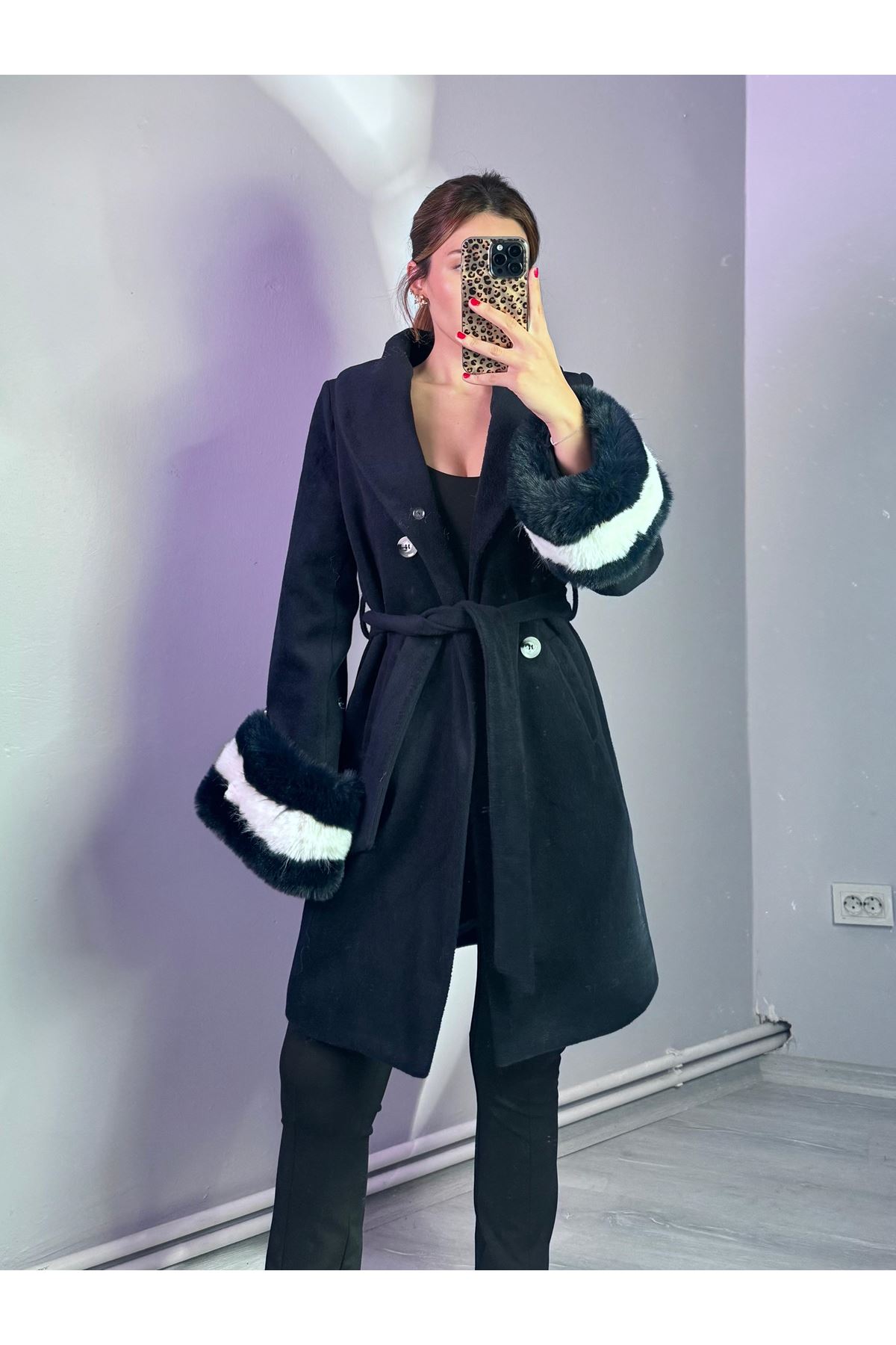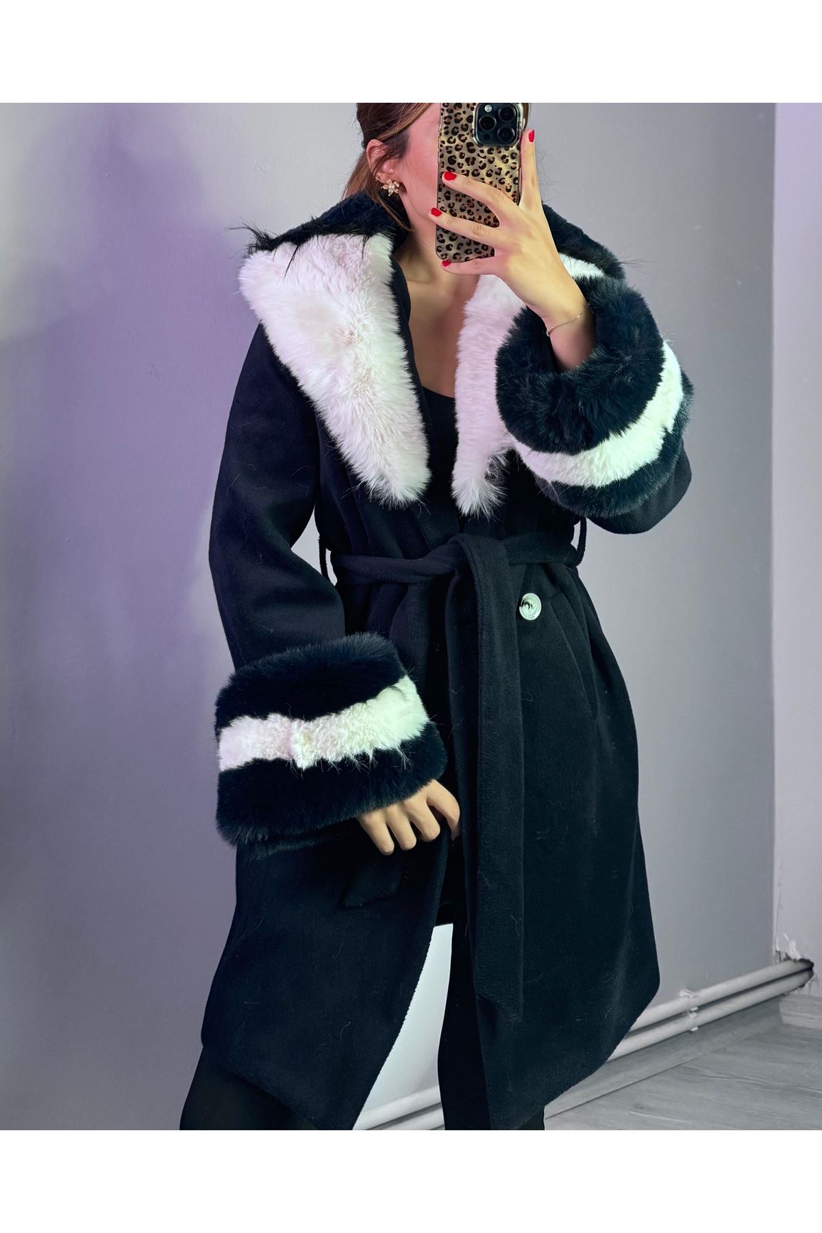 Yakası Ve Kolu Çift Renkli Kürklü Kaban