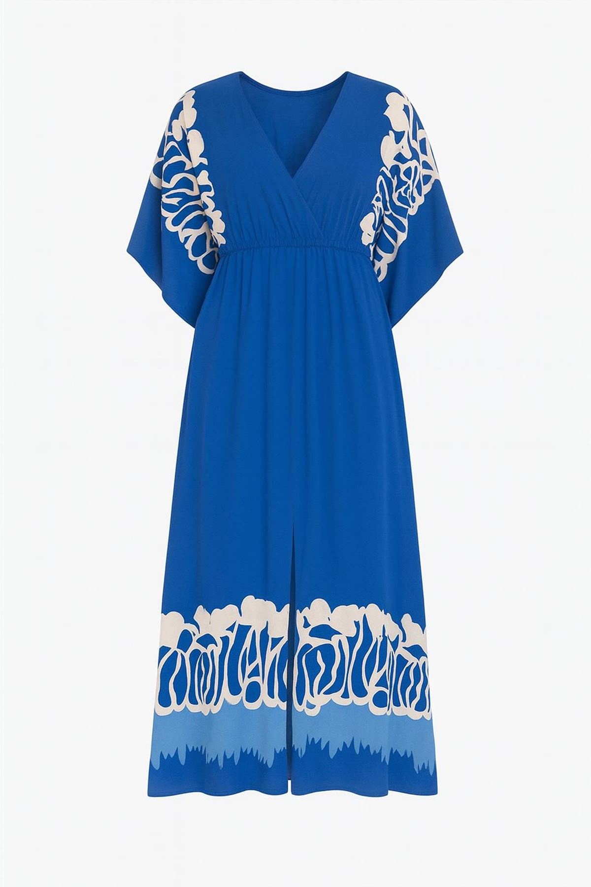 Yarasa Kollu Beli Lastikli Midi Elbise